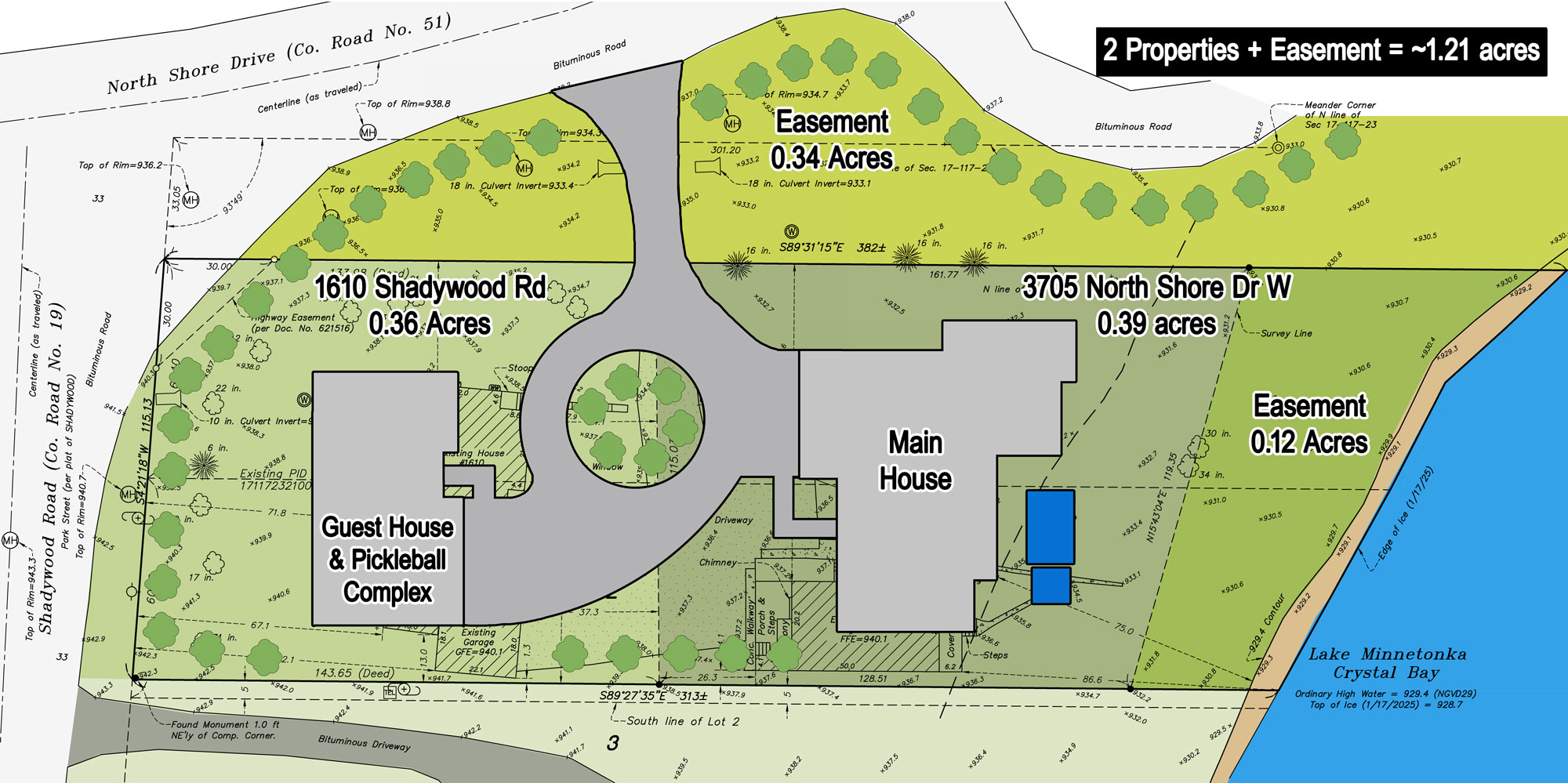 Welcome to an exclusive lakeside estate offering 135 feet of pristine, southeast-facing sandy bottom shoreline on Crystal Bay, an A-grade rated bay of Lake Minnetonka. This 0.75-acre lot is perfectly located, offering tranquility and walkability to some of the area’s most sought-after amenities, including the historic Lafayette Club, Lake Minnetonka Regional Park, and the charming lakeside village of downtown Wayzata. This 0.75-acre parcel possesses the spaciousness of a 1.21-acre lot, thanks to the adjacent City Easements that amplify its spaciousness. We can combine the 2 lots together and make a larger lot, or keep them separate and build 2 separate living structures, such as a mother-in-law suite or guest house, or expand your garage space to hold all of your lake toys – perhaps your very own tennis or pickleball court. There is potential to expand the lot another ~.22 acres to the south side of the property, making it feel like a total of 1.43 acres and ~185′ of sand-bottom shoreline. This is more than a lot—it’s an invitation to craft your own private sanctuary at the water’s edge. Lake Minnetonka spans over 14,000 acres and boasts more than 100 miles of shoreline, offering a lifestyle filled with boating, paddleboarding, sailing, and year-round fishing. From lazy summer days on the water to crisp winter mornings spent ice skating or ice fishing, life on Crystal Bay delivers beauty and activity through every season. Architectural plans by David Charlez Designs are available for a proposed 6,730 sq ft custom luxury home with a main-level owner’s suite with a vaulted ceiling, indoor-outdoor covered lanai entertaining spaces, and a design that celebrates lakefront living and all the breathtaking views that go with it. Enjoy having all the features like a His/Her closets with a large center island, luxury spa-like bath retreat area, Culinary Chef’s kitchen with intricate custom ceiling vaults and wood beams, and a back pantry & scullery. A 3-sided fireplace connects the Great Room, dining, and kitchen. The mudroom not only has storage, but also a washer/dryer for easy access when coming in from the lake with all the suits and towels. The Upper-level has amenities such as a bar, lounge, exercise room, Golf Simulator/Theater room, and guest retreat, and 3 bedrooms, each with a view of the lake, their own private ensuite and walk-in closet (2 have direct access to separate skydecks overlooking the lake).